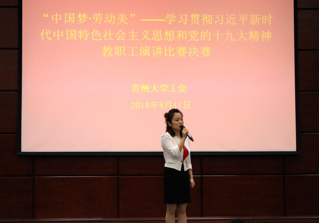 (文字  刘佳妮  摄影  王娅丽)为全面提升我校辅导员的综合能力与素质,进一步培育辅导员对岗位的认知,展示辅导员风采。由贵州大学工会主办的“中国梦·劳动美”——学习贯彻习近平新时代中国特色社会主义思想和党的十九大精神教职工演讲比赛决赛于511日上午在北校区一号行政报告厅举行。