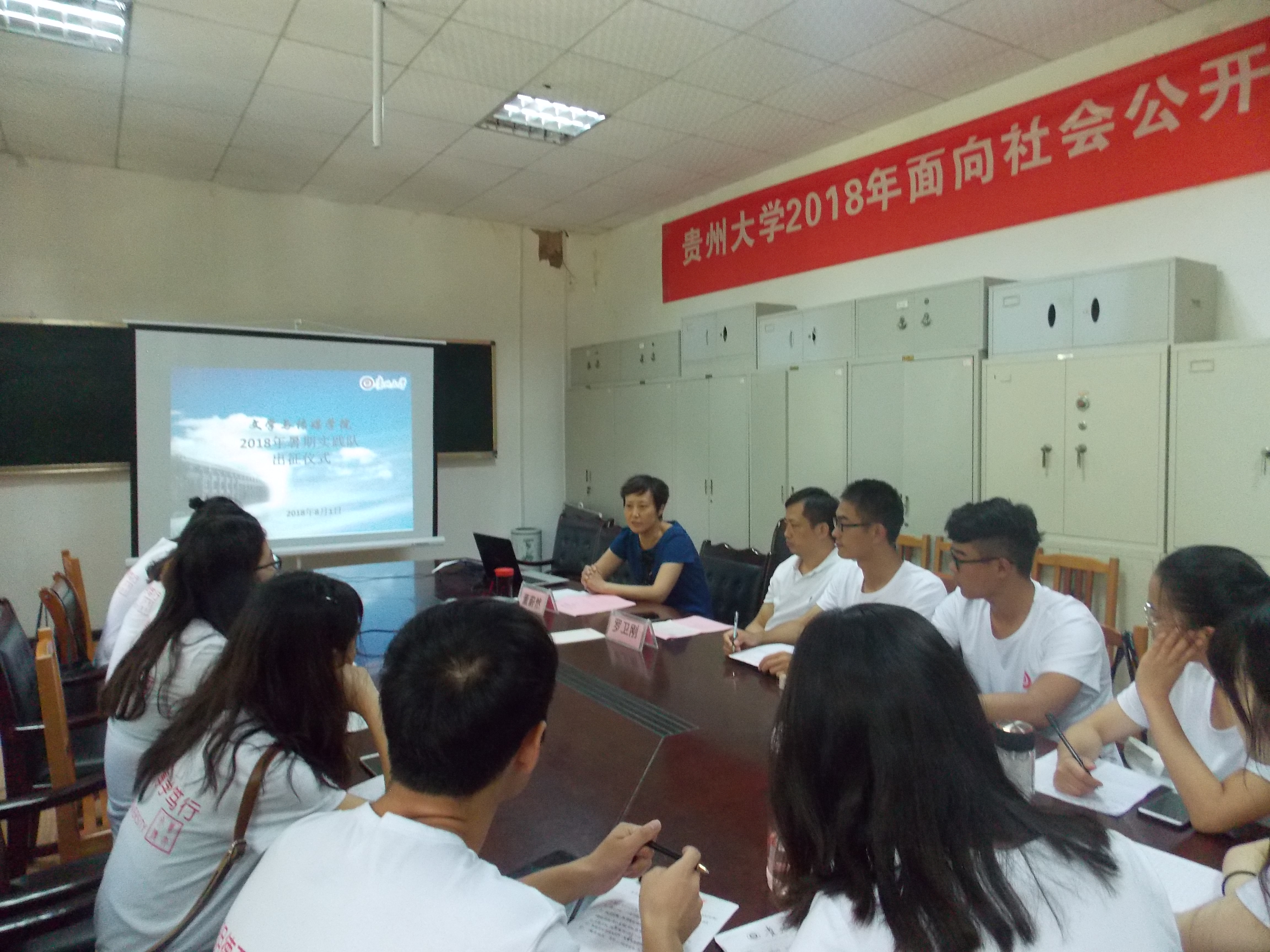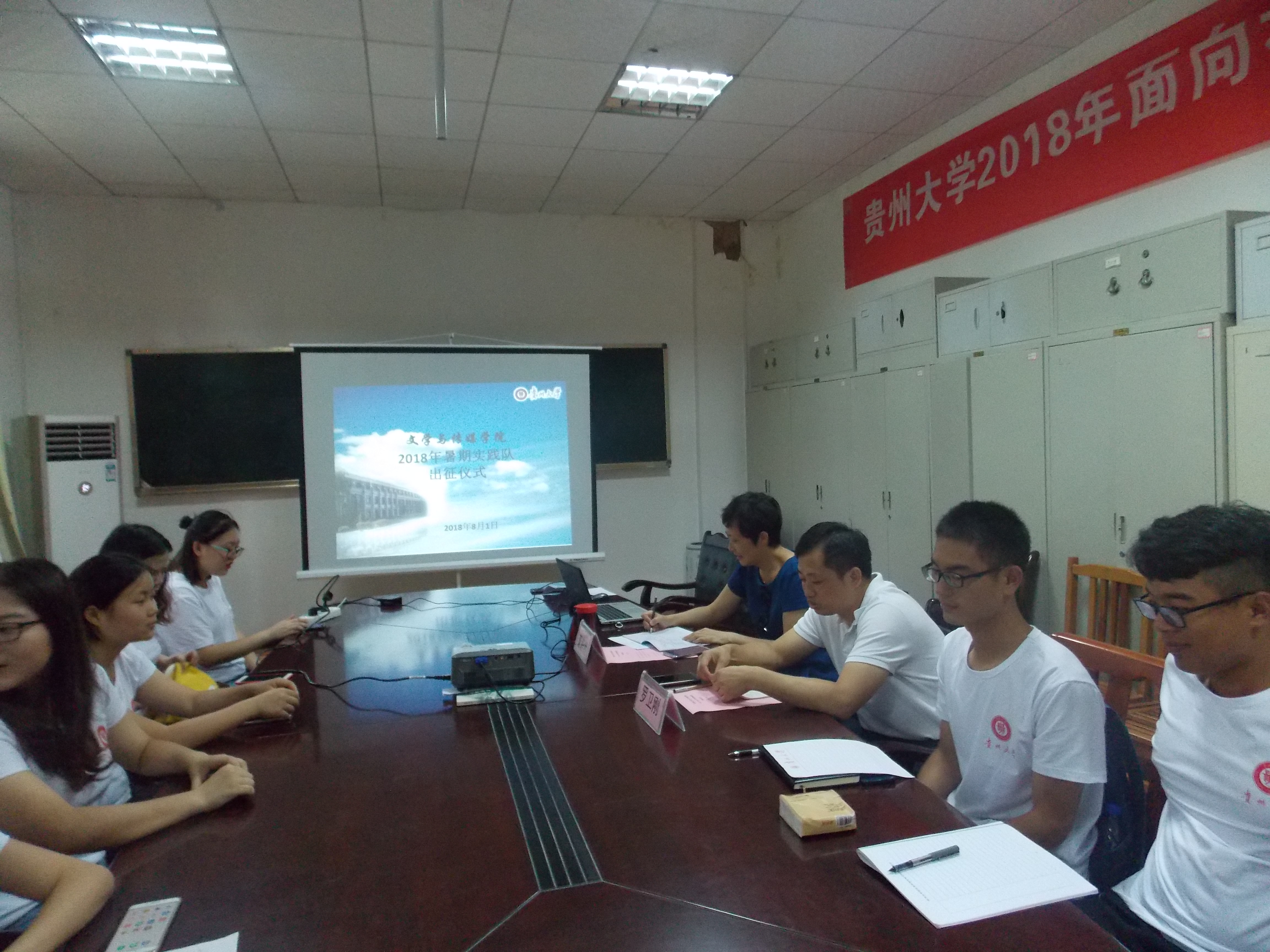 (文学与传媒学院 吴卿 摄影/金莎 报道)文学与传媒学院暑期实践队出征仪式于8月1日下午3时在贵州大学人文楼202会议室召开。文学与传媒学院党委书记罗卫刚、副书记董蔚然、暑期实践队成员出席会议,辅导员吴卿主持。