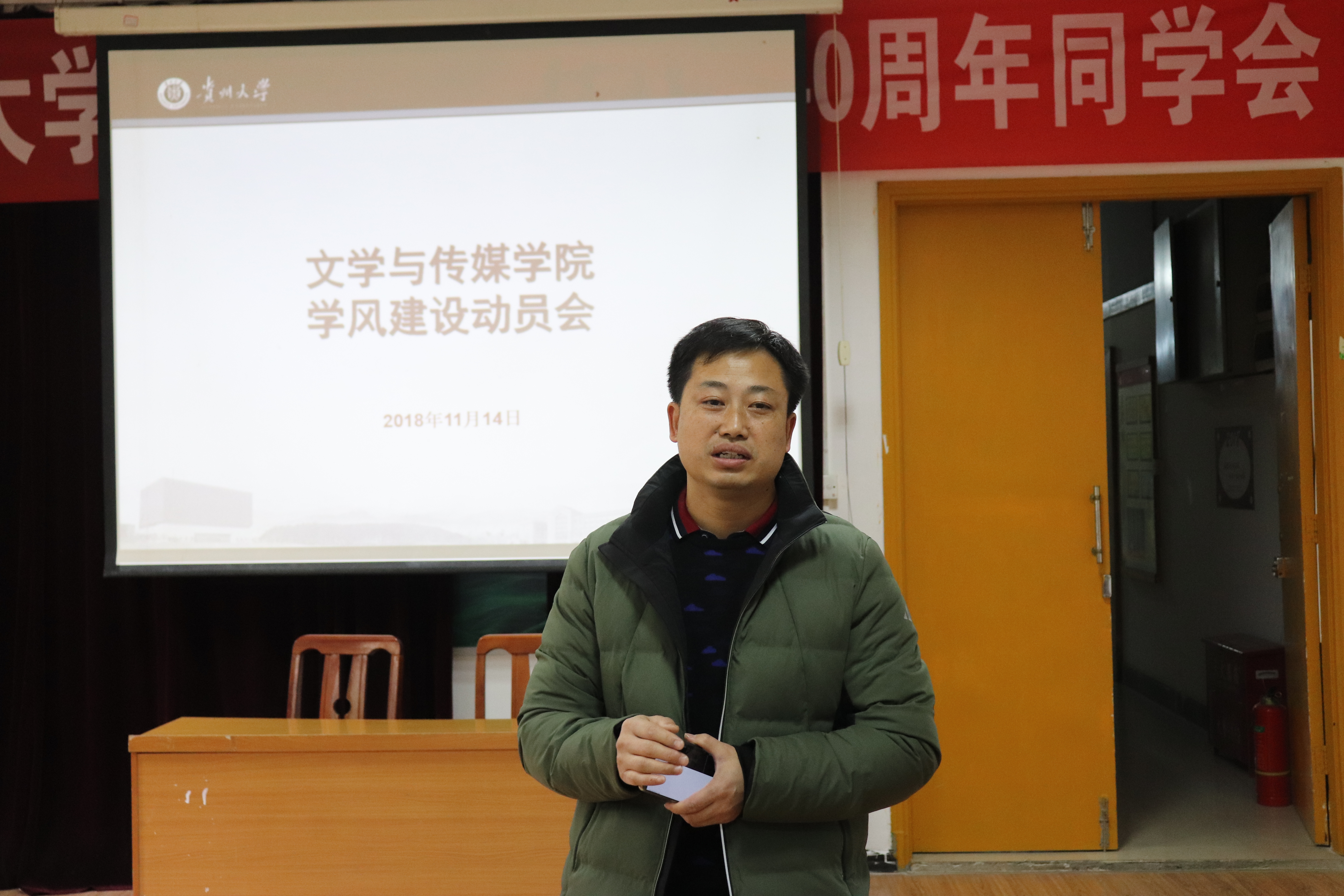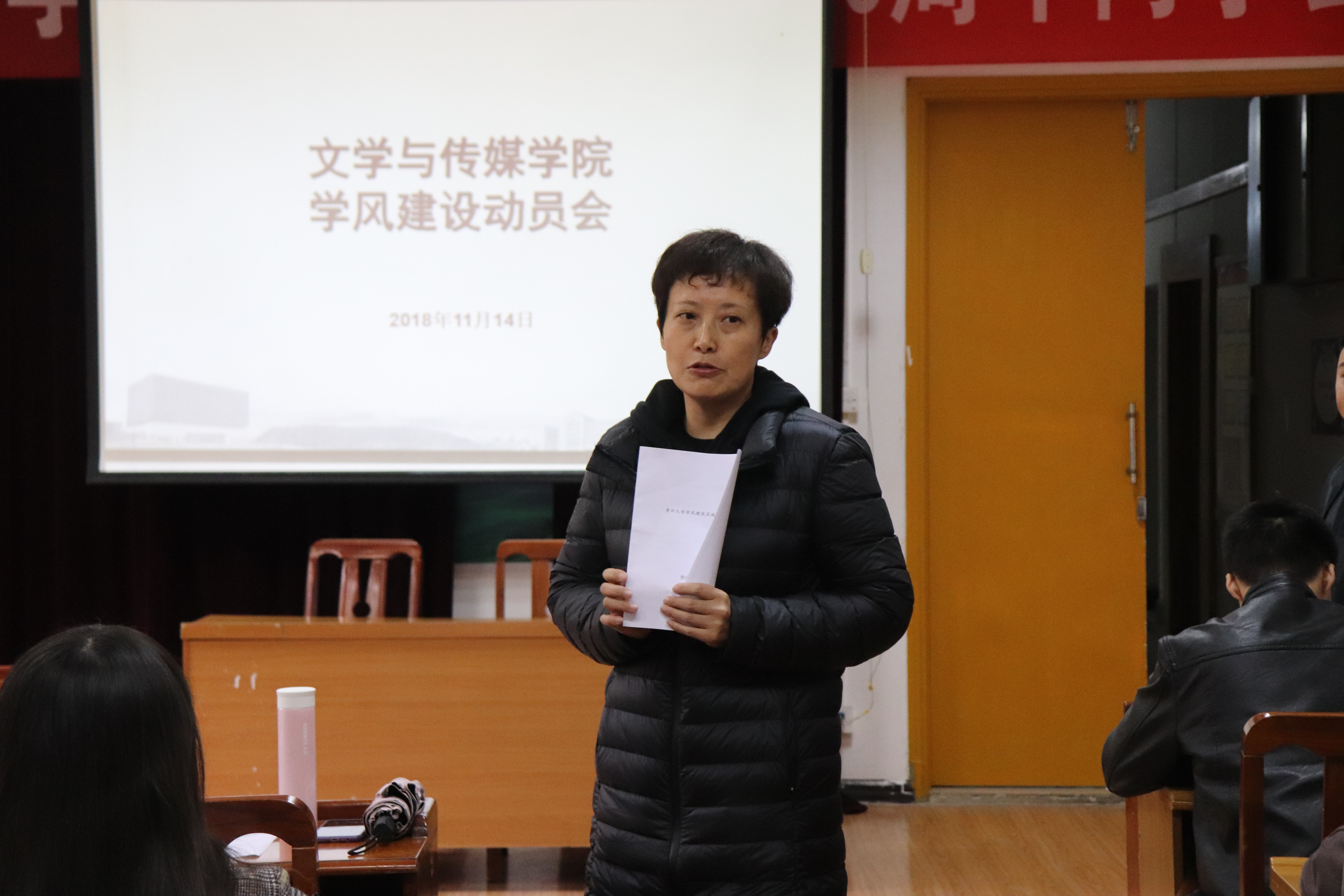 文学与传媒学院讯(蔡佳 姚丹 摄影报道)11月14日下午,文学与传媒学院于人文楼308教室举行学风建设动员会。学院党委书记罗卫刚、党委副书记董蔚然及辅导员吴卿出席会议,院学生会、团委负责人及各班班长参加本次动员会。