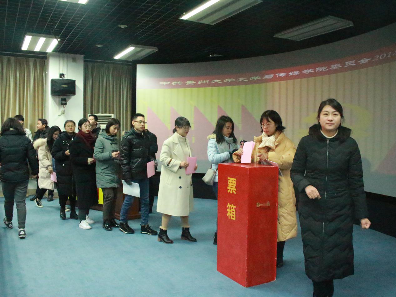 计票结束后,大会工作人员宣读当选人名单。罗卫刚、董蔚然、谭德兴、姬丹、张军当选为中国共产党贵州大学文学与传媒学院委员会委员。