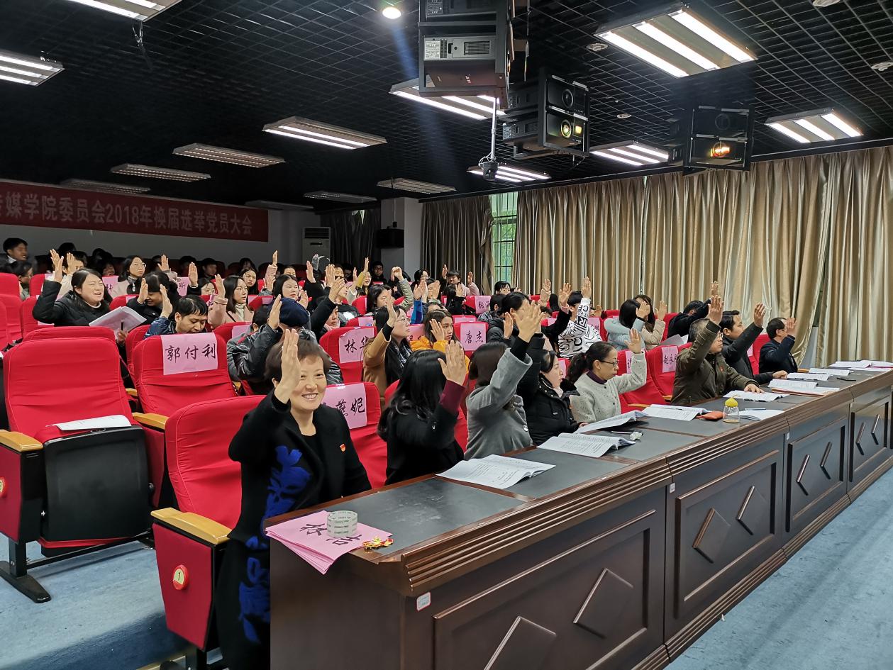 根据校党委的统一部署,2018年12月7日,文学与传媒学院在情景模拟实验室举行学院党委换届选举党员大会。院领导班子成员,在家全体师生党员参加会议。