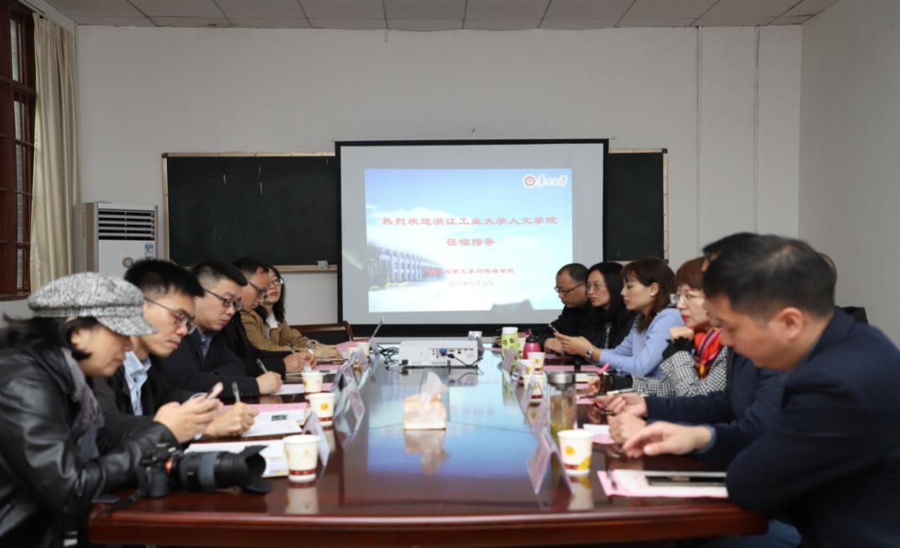 10月30日上午,浙江工业大学人半岛在线副院长邵鹏等一行五人到文学与传媒学院调研交流。交流会议在人文楼202会议室召开,副院长(主持工作)谭德兴、副院长唐娟、教学科科长郭付利、中文系副主任吕维、新闻系副部分教师参加了调研座谈。会议由副院长唐娟主持。