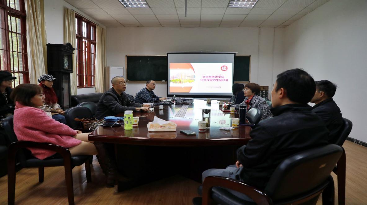为更好地推进博学课程的开展,10月30日下午,文学与传媒学院在人文楼202会议室召开博学课程师生座谈会。学院副院长(主持工作)谭德兴、各系主任、教学科研科科长郭付利、博学课程任课教师以及2017级博学课程选课学生代表参加了座谈会。座谈会由学院副院长唐娟主持。