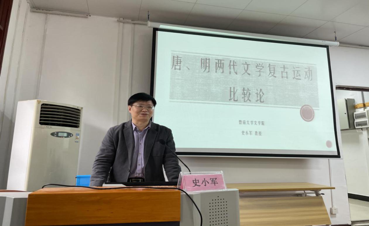 2020年11月6日,由贵州大学哲学社会科学研究院主办,贵州大学文学与传媒学院承办的贵州大学“文科讲坛”2020年第28期在人文楼308室举行,特邀暨南大学半岛在线史小军教授主讲“唐、明两代文学复古运动比较论”。