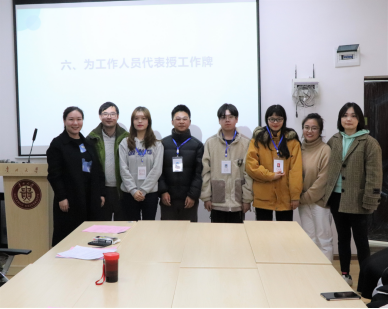会议最后,院党委副书记董蔚然为工作室授牌,各位老师为同学们发放了工作证。姚靓靓代表工作室表示,工作室全体成员在今后的工作中将更加努力,不断提升理论素养跟实操水平,将“溪山笔谈网络文化工作室”打造成学院的特色品牌。