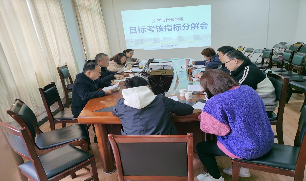 为把2021年度学院工作开好篇、部好局,3月11日下午,学院在人文楼204会议室召开了2021年度目标考核工作部署会。会议由院党委副书记、院长谭德兴主持,学院党委书记李开学,副院长唐娟出席,各系主任和各科室负责人参加了会议。