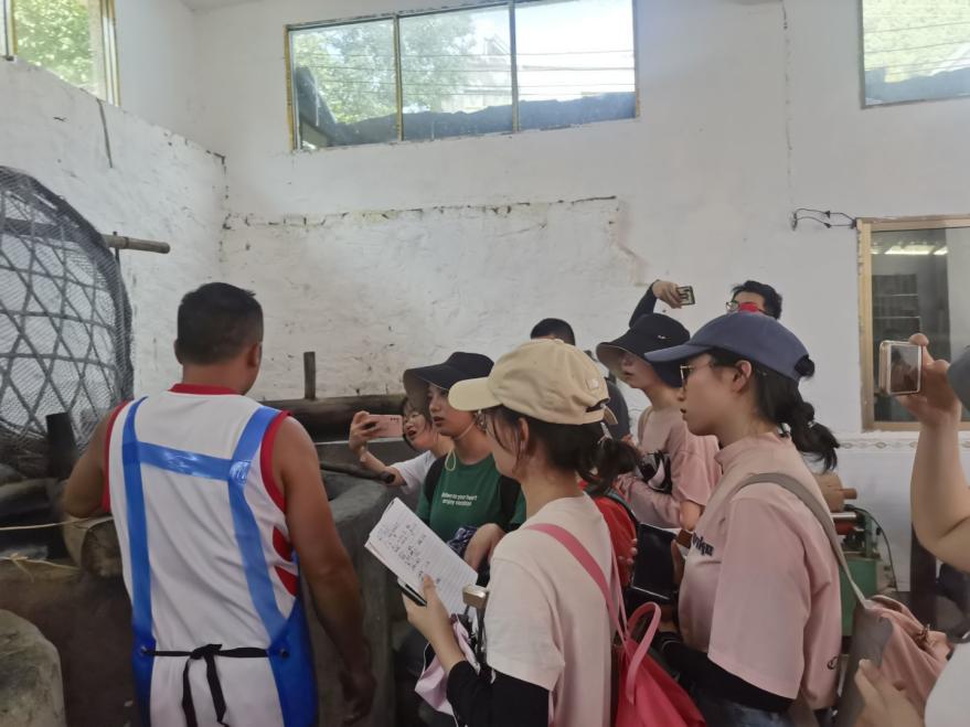 下午,队员步行至必克村桑蚕种养殖示范基地,沿途查看了当地的主要农作物分布、古墓碑刻和异地扶贫安置区的情况。在桑蚕种养殖示范基地,队员参观了蚕养殖场和蚕丝被制作,向工人了解当地的蚕产业的建设与发展。夜晚,队员在村中心了解当地布依农民小打音乐活动的开展情况。