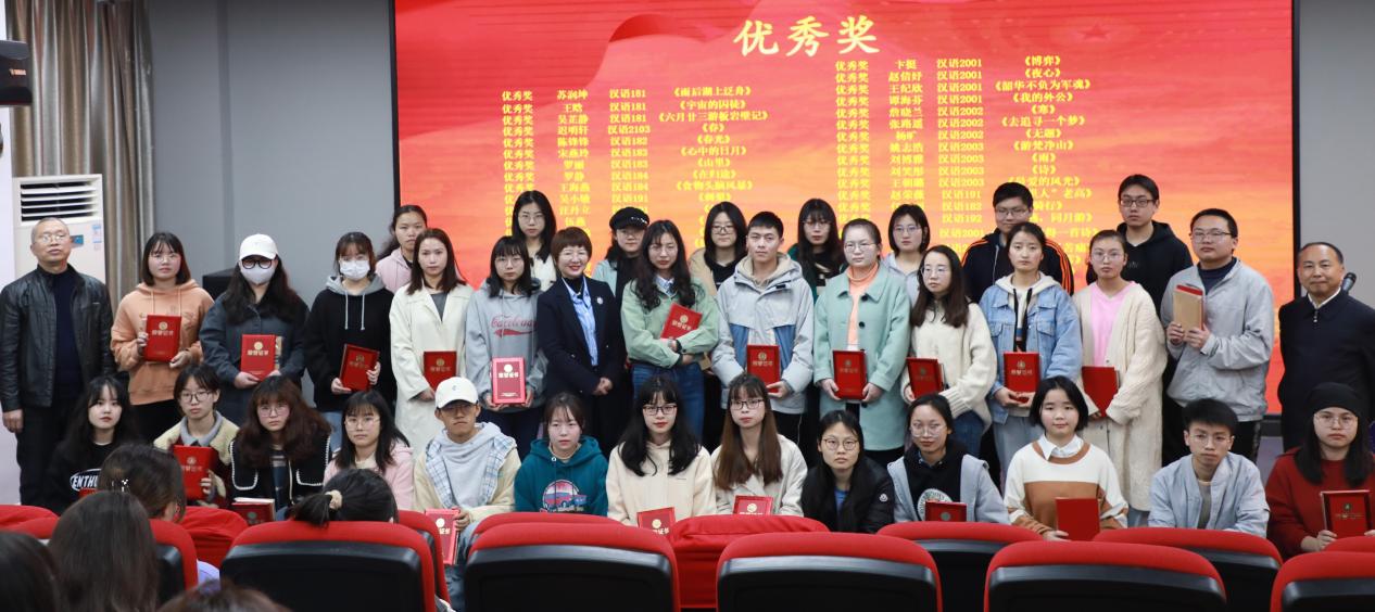 本届原创作品大赛共58人获奖。其中,一等奖3名,二等奖6名,三等奖12名,优秀奖37名。李开学书记、谭德兴院长、唐娟副院长共同为获奖的同学们颁奖,祝贺他们在本次大赛中取得的佳绩,鼓励他们再接再厉。