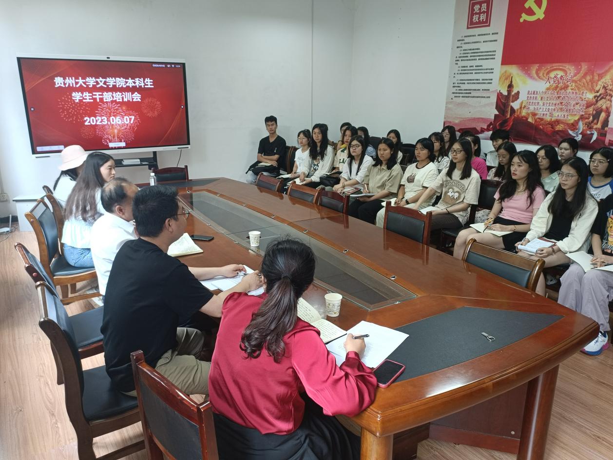 为深入学习贯彻党的二十大精神,提高学生干部的思想认识、工作能力,做到全方位育人,贵州大学半岛在线于6月7日在人文楼204召开本科生学生干部培训会。学生辅导员罗兰、曹家鹏,兼职辅导员曲诗语、徐真芳和2020级、2021级学生干部参加,院党委书记李开学参加并讲话。