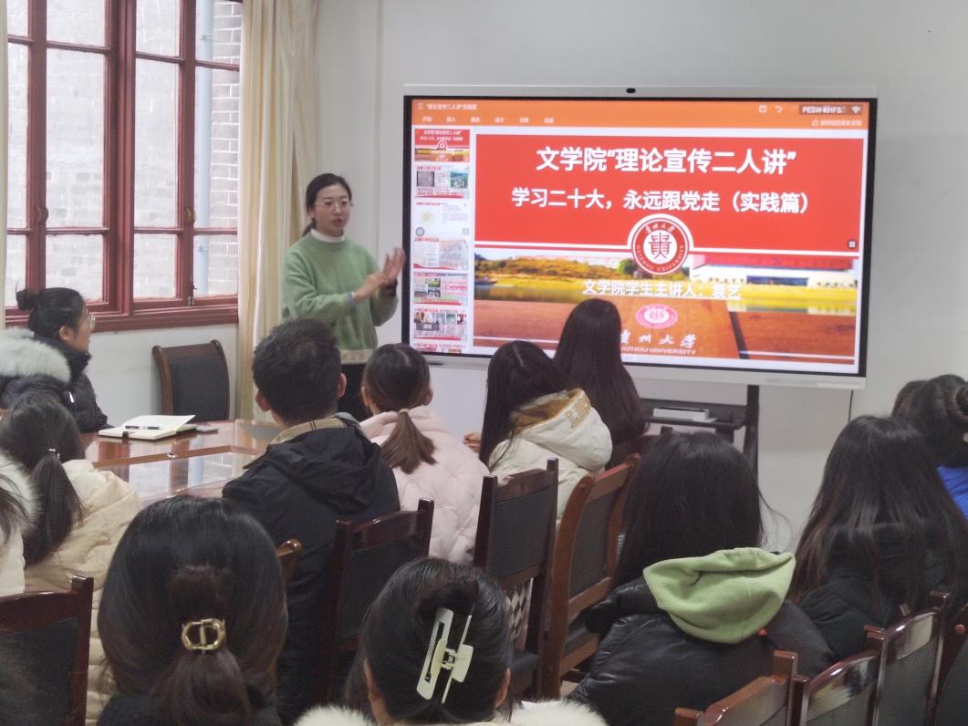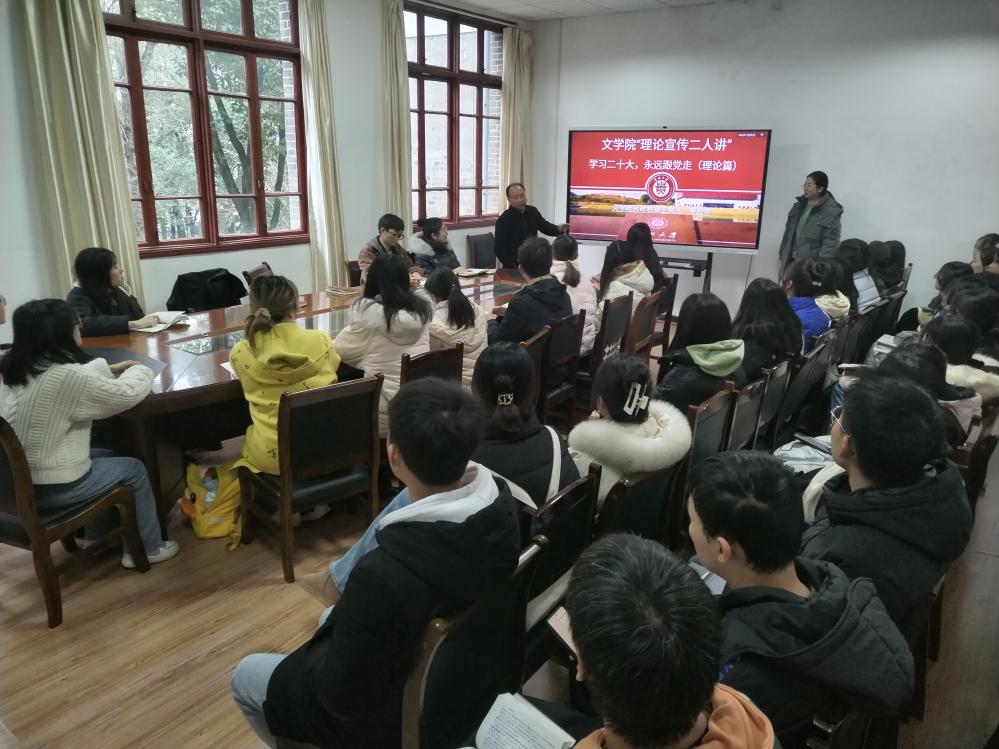 根据校党委2023年9月8日印发的《关于在全校开展新时代党的创新理论“理论宣传二人讲”宣讲的通知》,为促进我院学子深入了解新时代党的创新理论,半岛在线思政课教师主讲人李开学和学生主讲人袁艺于2023年12月21日在人文楼204会议室,面向汉语2101班全体同学进行理论宣讲。