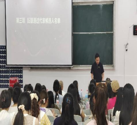 接下来酝酿通过代表候选人名单与总监票人、监票人名单,指定计票工作人员。确定周贤军为大会总监票人,曹家鹏为监票人,宋玉英、朱文静两人为大会计票人。