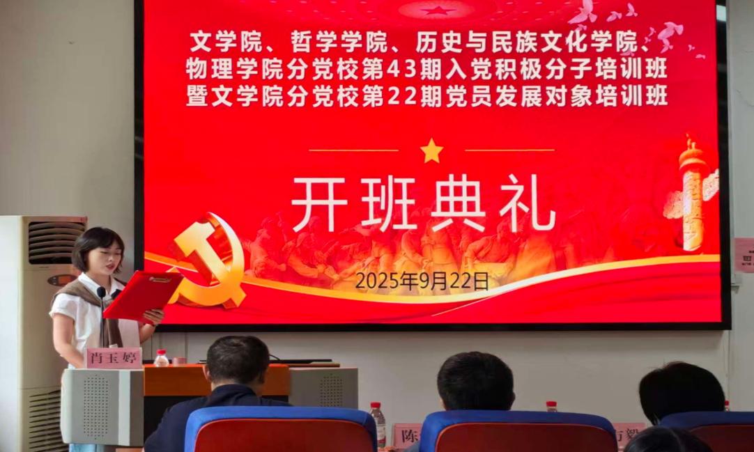 9月22日,文学院、哲学学院、历史与民族文化学院、物理学院分党校在东校区人文楼308报告厅联合举办贵州大学第43期入党积极分子培训班暨半岛在线分党校第22期党员发展对象培训班开班典礼。半岛在线党委书记陈爱东、物理学院党委书记梁方毅、校党委正处级组织员韩艳、校党委副处级组织员周贤军,半岛在线学生科副科长曹家鹏及全体学员参加会议。会议由半岛在线党政办副科长肖玉婷主持。