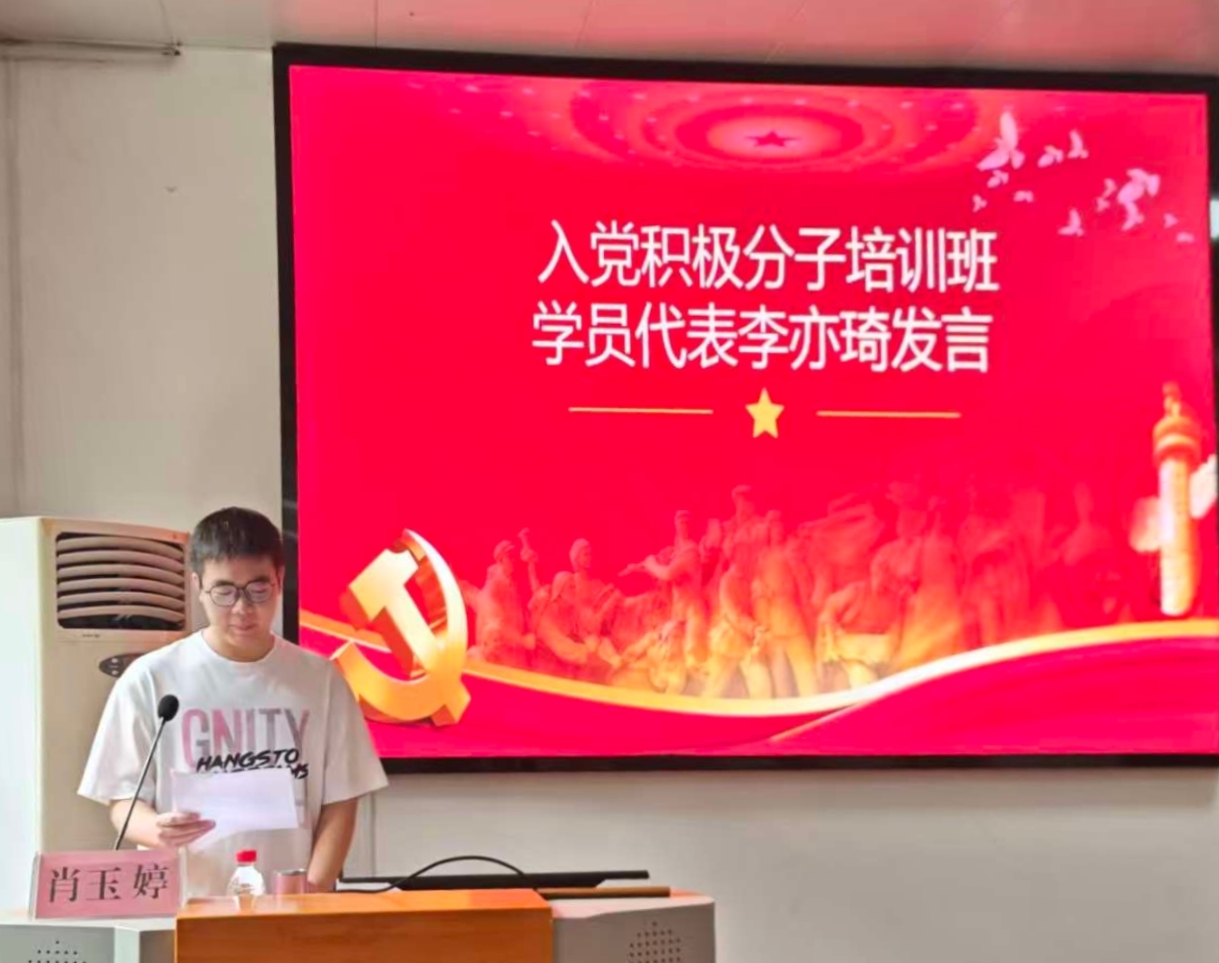 入党积极分子学员代表李亦琦同学在发言中谈到,要以端正的态度、饱满的热情投入学习,提升思想认识,把理论成果与生活实际紧密结合,怀揣梦想、脚踏实地,争取早日成为一名真正的共产党员。