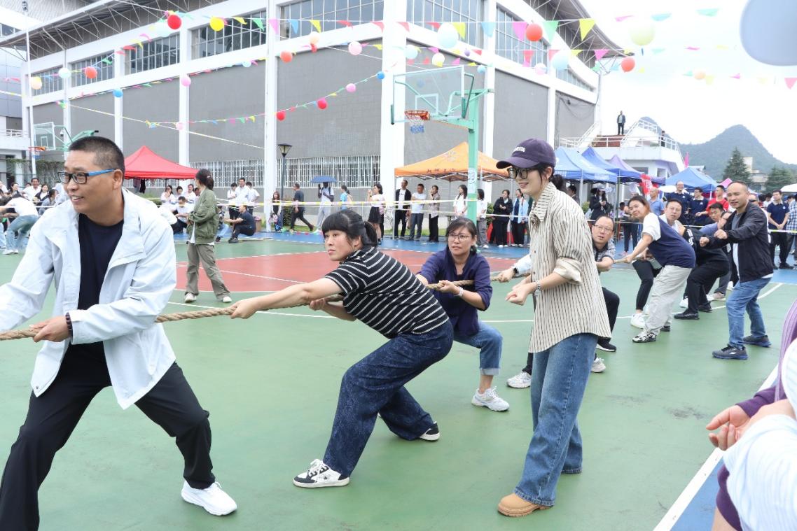 “体育强国,有你有我,健康生活,人人有责”。10月16日上午,贵州大学第十九届体育节在东校区体育场拉开帷幕。全校各学院及职能部门的34支教工队伍齐聚赛场,共同参与拔河比赛的激烈角逐,半岛在线12名老师组队参赛。