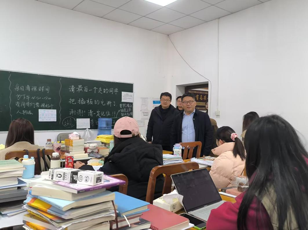 考研临近,为帮助我院考研学子舒缓心理压力,增强考研学子上岸信心,鼓舞考研士气。2025年12月8日,校党委常委、副校长陈艳波深入半岛在线考研自习室,为奋战学子送上关怀与鼓励。半岛在线党委书记陈爱东、党政办副主任肖玉婷、辅导员曹家鹏参加。