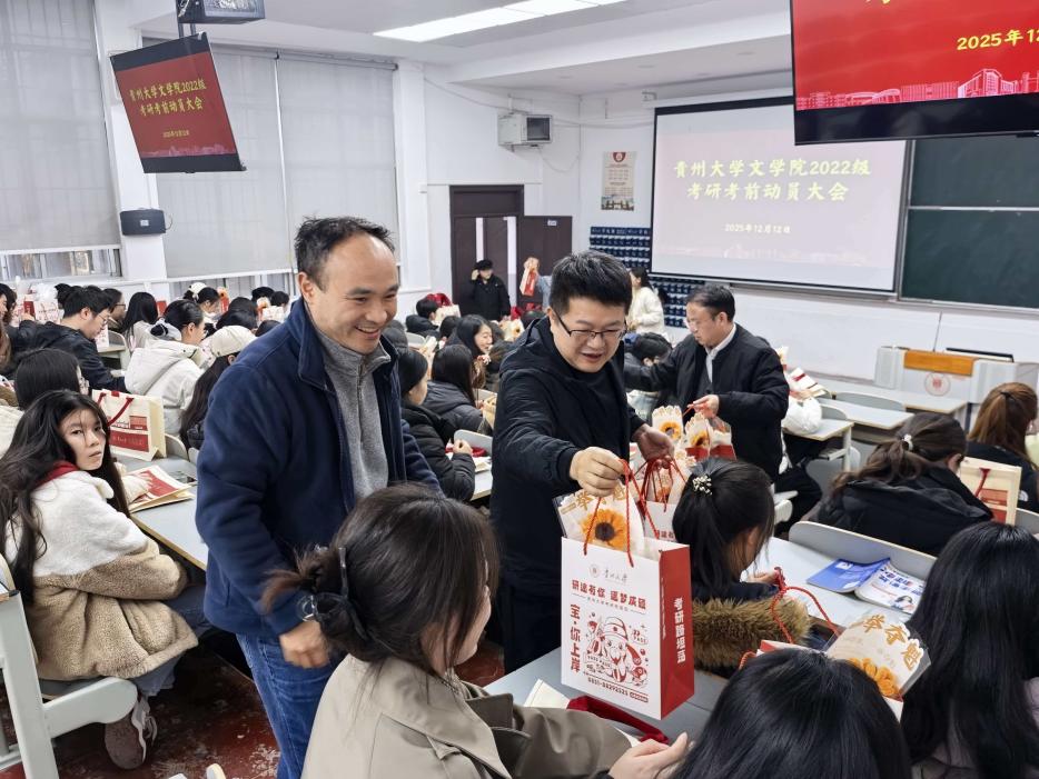 最后,学院领导与老师们一同为考研学子送上考研祝福包。