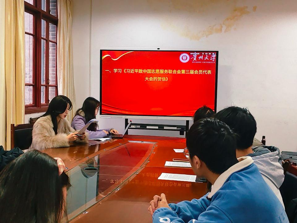 2025年12月23日,共青团贵州大学半岛在线研究生总支部委员会在人文楼204教室组织开展“改革攻坚破难题,志愿担当惠民生:践行贺信精神与深化改革的时代答卷”主题溪山习政理论学习活动。2025级全体研究生参加此次学习,会议由半岛在线研究生团总支书记贺诗洋主持。